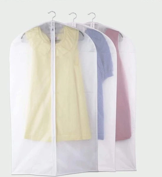 Bescherm uw kleding tegen stof, motten en nare geuren met deze semi-transparante kledinghoes set (2 stuks) in L formaat. Geschikt voor jurken, kostuums, jassen, shirts, rokken, truien, broeken etc.