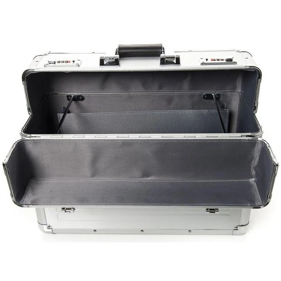Aluminium pilotenkoffer van Alumaxx. De koffer is ruim ingedeeld met een georganiseerd hoofdcompartiment. Gemakkelijk mee te nemen met een soepele handgreep en afneembare schouderriem. Met verstevigde hoeken voor extra bescherming. De koffer is volledig afsluitbaar middels twee klipsluitingen en een cijferslot.