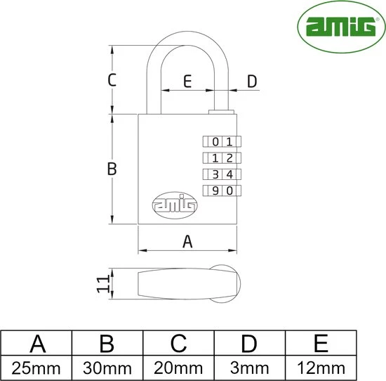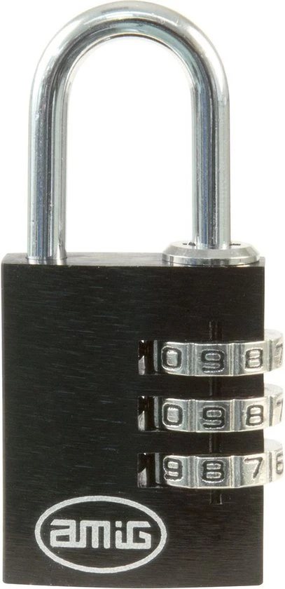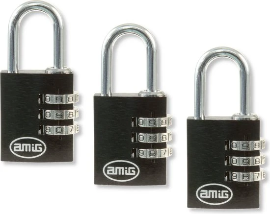 Een set van 3 hangsloten met 3-cijferig cijferslot gemaakt door Spaanse merk AMIG. Kleur zwart