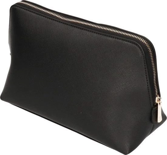 Luxe toilettas/make-up tas zwart met rits 25 cm. Reis toilettas/beauty case met zachte voering en ritssluiting. Kleur: zwart. Formaat: 25 x 16 x 10,3 cm. Inhoud: 3 liter. Materiaal: polyurethaan. Handbagage reis accessoires toilettassen/make-up tasje in de kleur zwart.