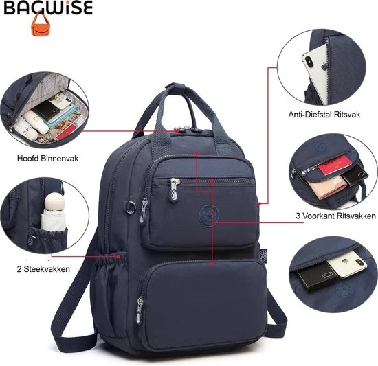 – 12 rits/vakken om uw spullen veilig en droog te kunnen beschermen inclusief een anti-diefstal rits/vak.