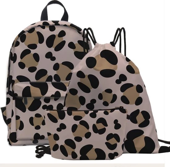 Het bestaat uit een Panterprint Rugzak, Panterprint Etui & een Panterprint Gymtas.