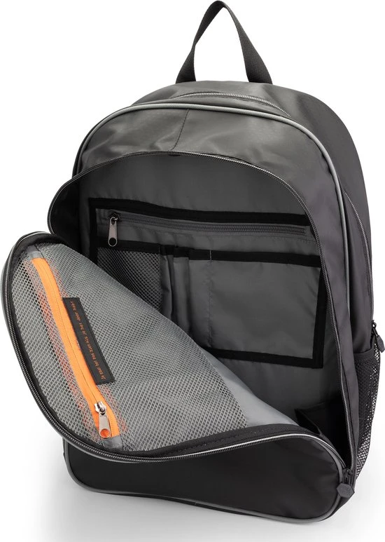 - Vakken: een hoofdvak en een groot voorvak met diverse opbergvakjes binnenin, een klein voorvak en twee mesh insteekvakken aan de zijkanten
