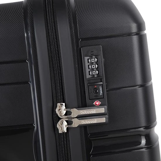 Middelgrote luxe hardschalen, polypropyleen koffer uit de ONE-CITY serie van Decent. Koffer is voorzien van een ritssluiting rondom die op slot te zetten is met een vast TSA cijferslot op de zijkant van de koffer. Binnenin gevoerd en voorzien van tussenschot met ritssluiting, ritsvakje en spanbanden. Handvat op boven- en zijkant, uitschuifbare trekstang en voorzien van 4 tone-in-tone zwenkwielen voor optimaal reiscomfort.