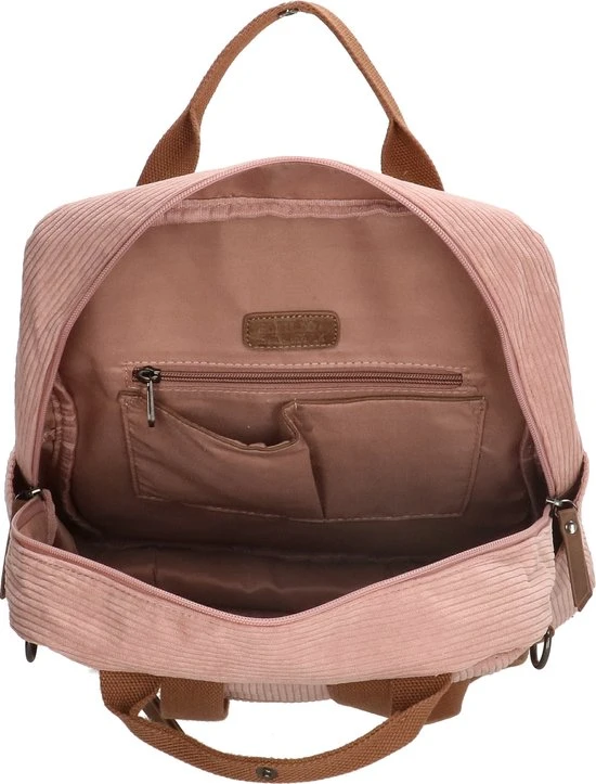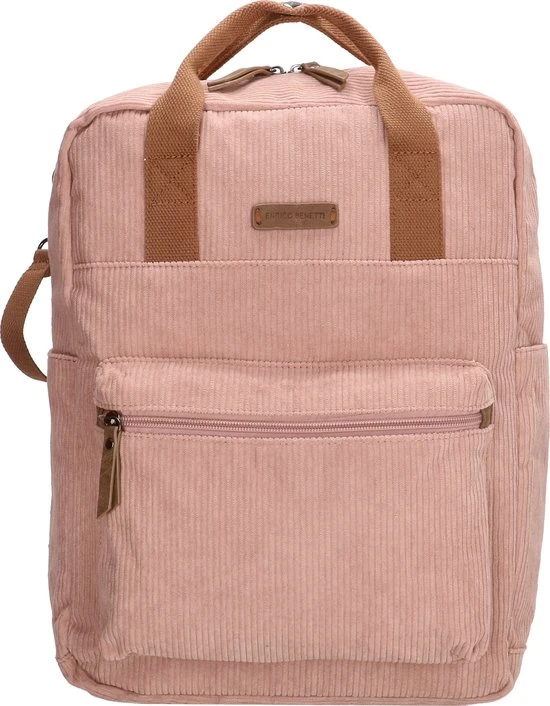Stijlvolle rugzak van Enrico Benetti uit de Marley serie. Deze leuke rugzak heeft een corduroy ribstof buitenzijde, de buitenzijde. De rugzak beschikt over een zeer ruim hoofdvak met ritssluiting. In het hoofdvak met ritssluiting zit een ritsvak, een laptopvak 14 inch, een steekvak en een smartphonevakje. Ook heeft de rugzak een voorvak en een achtervak met ritssluiting en 2 zijvakken. De tas beschikt over 2 verstelbare schouderbanden, hierdoor kan je de tas altijd op de gewenste lengte dragen.