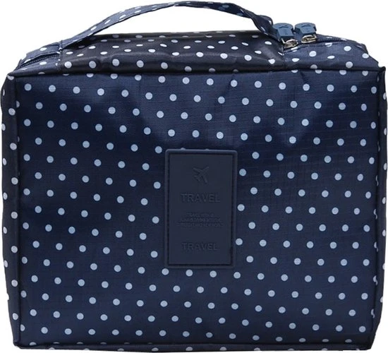 De make up tas is gemaakt van duurzaam polyester en voorzien van een dubbele rits. Tevens bevat de make up tas een handvat voor gemakkelijk transport. Het materiaal is waterdicht, dus de tas kan zonder problemen op de wastafel worden gezet. Het opmaken wordt een waar feest met deze handige en compacte make up tas.