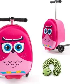 Een step en een koffer. Ferry Fuchsia houdt al je spullen veilig. Deze lieve uil zorgt ervoor dat je op avontuur altijd kan meedoen. Ferry valt op door haar roze kleur en zachte vacht. Deze bagagetas kan tegen een stootje, en dat moet ook wel want Ferry is naast koffer ook als step te gebruiken! Met een klik op de knop rol jij met Ferry Fuchsia over de stoepen. Van lunchtrommels tot hoofdkussentjes: Ferry eet ze op en houdt ze veilig. Avontuur in de avond? Ferry heeft lampjes in haar pootjes. Deze lichten op en zorgen voor een veilige reis. Ferry Fuchsia kan 21 liter water drinken/ aan spullen opeten.