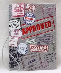 Leuk paspoort hoesje met de tekst ‘Approved’ erop en diverse stempels, Om uw paspoort te beschermen.