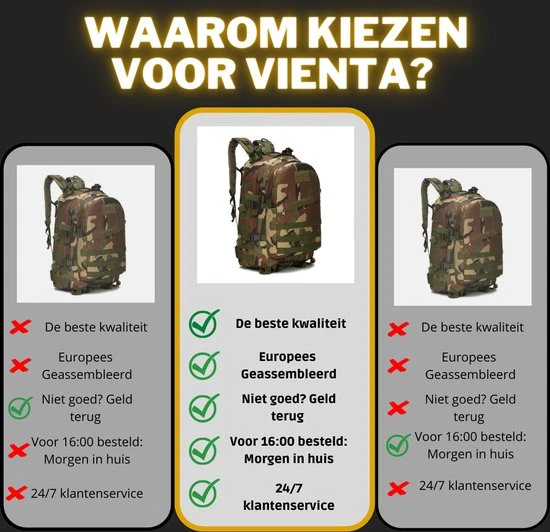 ✓ Rugzak Maat: 40 cm x 25 cm x 50 cm (L x B x H)