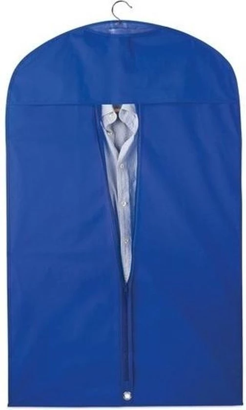 Blauwe kledinghoes 100 x 60 cm met rits. Blauwe beschermhoes om uw kleding netjes te houden of op een nette manier te vervoeren. Aan de onderzijde voorzien van metalen ring om de hoes dubbel te vouwen en aan een kledinghanger op te hangen. Formaat: ongeveer 100 x 60 cm. Materiaal: zacht PEVA materiaal. (Exclusief hanger en kleding).