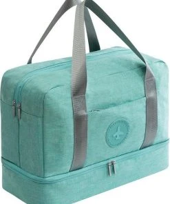 Deze handbagage reistas is erg praktisch. De tas heeft het formaat van handbagage, maar je kunt er een hoop in kwijt. Hij is voorzien van twee grote vakken, welke verdeeld zijn met twee ritsen aan de bovenkant. Eén vak is, doordat het gevoerd is met plastic, compleet waterdicht. Hierdoor kun je bijvoorbeeld, vieze, natte kleding scheiden van je schone en droge kleren. Aan de onderkant van de tas is door middel van een rits nog een vak te openen. Dit is perfect voor het opbergen van een paar schoenen. Hierdoor hoef jij niet bang te zijn dat jouw mooie (witte) kleding vies zal worden als je met je schoenen op straat hebt gelopen. Daarnaast vind je aan de voorkant van de tas nog een klein ritsje, waar jij bijvoorbeeld je telefoon, paspoort of vliegtickets in kunt opbergen.