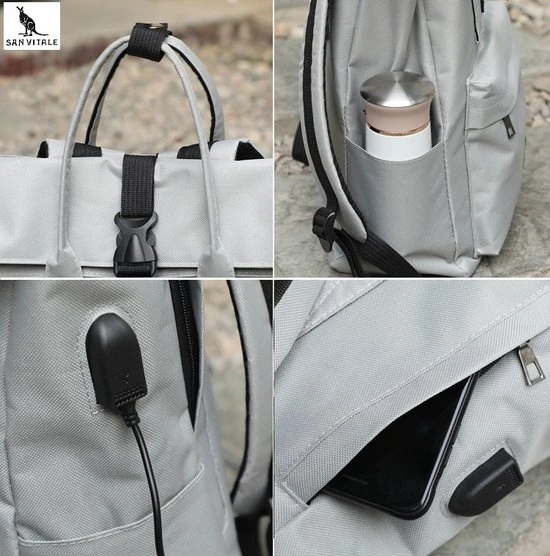 Ook is er een USB opening aan de zijkant van de tas. Hierdoor kunt u makkelijk uw powerbank in de tas laten, maar wel aansluiten op uw telefoon.