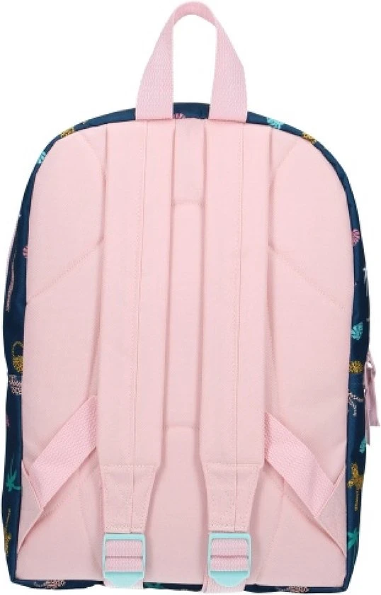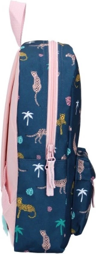 Met luipaarden en palmbomen ga je elke dag met een grote glimlach op pad met deze Milky Kiss rugzak! Deze rugzak is blauw en heeft een voorvak en hoofdvak beide met een lichtroze rits. Verder is de rugzak eenvoudig op te hangen met een ophanglus en heeft hij comfortabele schouderbanden die verstelbaar zijn.