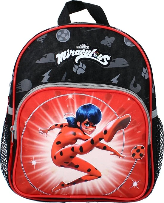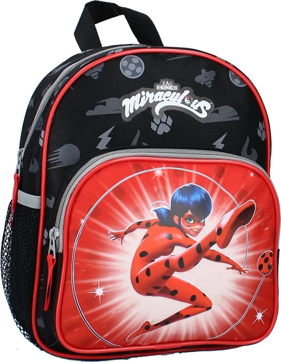 Deze Miraculous rugzak is vanaf de dag dat je hem in huis hebt favoriet, dat kan niet anders. Op het grote voorvak zie je Ladybug in actie. Dat doet ze te midden van leuke print. In het hoofdvak is ruimte voor alles wat er mee moet naar school. De schouderbanden van de rugzak zijn verstelbaar, en tas is ook mee te nemen aan de lus aan de bovenkant.