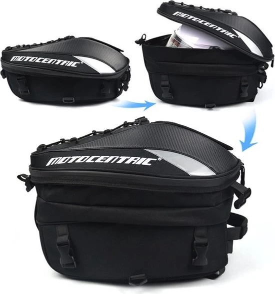 Deze bagagetas voor op de motor is ideaal als je vaak spullen mee wilt nemen, zonder een rugzak op je rug te hoeven dragen tijdens het rijden. Deze tas is namelijk door middel van een meegeleverd kliksysteem eenvoudig te bevestigen op de staart van de motor. In deze tas kan je veel spullen meenemen zoals een laptop of zelfs een helm! De tas kan namelijk worden verkleind en vergroot waardoor deze passend te maken is voor grotere objecten. Op deze manier kan je tot wel 36.4 liter aan spullen meenemen.