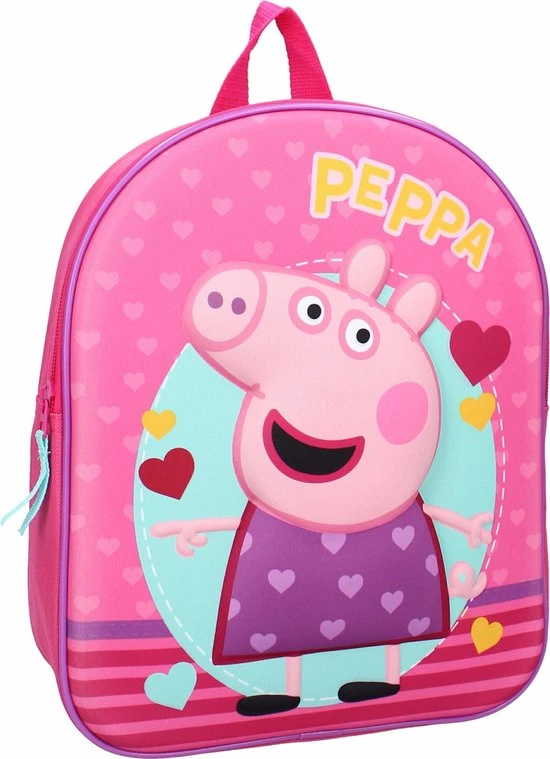 Met deze superschattige rugzak van Peppa Pig neem je gemakkelijk al jouw spullen overal mee naartoe! De tas heeft één ruim hoofdvak waar al je schoolspullen in passen. De schouderbanden zijn in lengte verstelbaar en je kunt de tas gemakkelijk ophangen aan de lus.