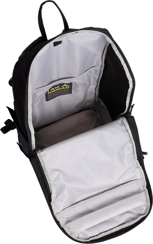 De Torcal 25 biedt met zijn 25 liter genoeg inhoud om zowel je dagelijkse spullen als je laptop mee te dragen. De tas heeft een groot hoofdcompartiment die volledig opengeritst kan worden zodat je in één oogopslag bij al je spullen kunt. Rits je dit hoofdcompartiment open, dan vind je daar een klein vakje met sleutelhaakje waar je sleutels en andere kleine items in kwijt kunt. Hiernaast heeft de Torcal 25 nog een groot voorvak en kleiner vakje bovenop, handig voor de spullen die je binnen handbereik wil houden zoals bijvoorbeeld je telefoon of zonnebril. De tas is groot genoeg om laptops in te vervoeren en is compatibel met onze 15.4 inch NOMAD laptop sleeves.