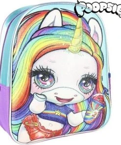 Op de rugzak vind u kleurrijk personage uit de slime reeks Poopsie.