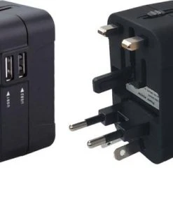 Flash-uitverkoop ???? Benson Wereldstekker – Reisadapter – Internationaal – 2 USB Poorten – Zwart ✨