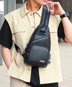 Korting ⌛ San Vitale® – Vegan Leren Slingbag – SBag – Schoudertas – Rugzak – Crossbody Bag – Zwart ????
