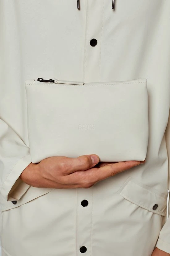 De toilettas is een compacte toilettas voor kleine accessoires en onontbeerlijke schoonheidsproducten. Het ontwerp wordt gekenmerkt door zijn minimalistische silhouet, zachte rondingen aan de basis en strakke stiksels bij de opening. De tas is afgewerkt met een voelbare TPU ritstrekker. De toilettas is gemaakt van Rains’ kenmerkende waterdichte PU-stof, ontworpen voor draagkracht, duurzaamheid en een zacht gevoel.