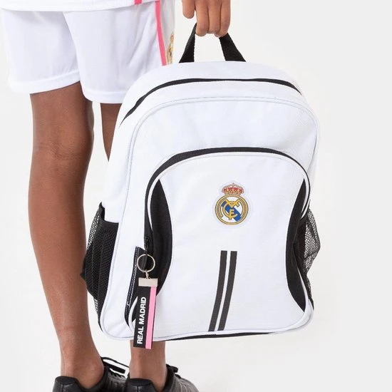 Real Madrid junior rugzak 38cm Ben jij een echte fan van Real Madrid? En zoek je een gave manier om dat te laten zien? Dan is deze Real Madrid rugzak helemaal iets voor jou. Support de mannen van Zinedine Zidane met deze mooie zwart witte backpack, voorzien van het echte Real Madrid embleem op de voorkant. Perfect voor het dragen van je school- of sportspullen, met de dubbele schouderbanden en twee ritssluitingen. Met de Real Madrid rugzak kan er bovendien geen enkele twijfel meer bestaan over jouw favoriete club! Kenmerken * PERFECT VOOR SCHOOL: De rugzak is 38 cm hoog, met twee schouderbanden en een handvat. Perfect voor school. * ECHTE CLUBKLEUREN: De rugzak is zwart en wit, dé clubkleuren van Real Madrid * OFFICIEEL PRODUCT: De rugzak is onderdeel van de fancollectie van Real Madrid. Daardoor is de kwaliteit gegarandeerd goed. Rugzak van een kampioen! In de laatste zes jaar werd de Champions League de helft van de tijd gewonnen door Real Madrid. Met megasterren als Cristiano Ronaldo, Gareth Bale, Sergio Ramos en Benzema counterden ze iedere tegenstander onder het gras. Daarnaast is Real Madrid Recordkampioen in Spanje, in Europa en club van de supersterren; Real Madrid is een club voor kampioenen. En jij bent zo’n kampioen, daarom ben je natuurlijk ook fan! Wil jij de club van Zinedine Zidane, Karim Benzema, Eden Hazard en Sergio Ramos op een originele manier aanmoedigen? Dan is deze Real Madrid rugzak de perfecte manier. Laat al je klasgenoten, teamgenoten en vrienden zien dat jij een echte kampioen bent met deze Real Madrid backpack!