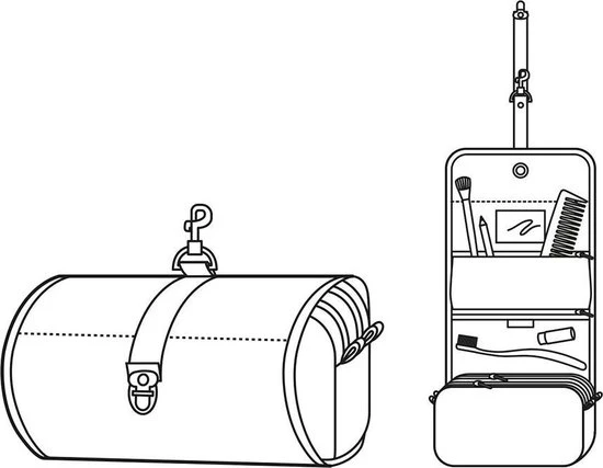 Opgerold staat netjes, de reisenthel wrapcosmetic is een handige toilettas met vele verschillende vakken en bied plaats aan al je verzorgingsproducten. Als alles er eenmaal in zit rol je hem op en past hij zo in je koffer. Met de sluiting kan je hem op de plaats van bestemming ophangen aan een haakje of deurknop, als dat niet handig is!