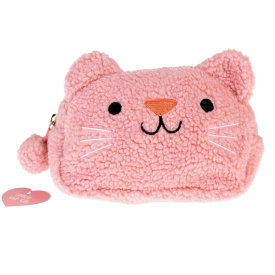 Heerlijk zacht make-up tasje van Rex London in de vorm van een poes. Het tasje is voorzien van een ritssluiting waaraan een pomponnetje is bevestigd. Aan de binnenkant bevindt zich nog een extra binnenvakje.