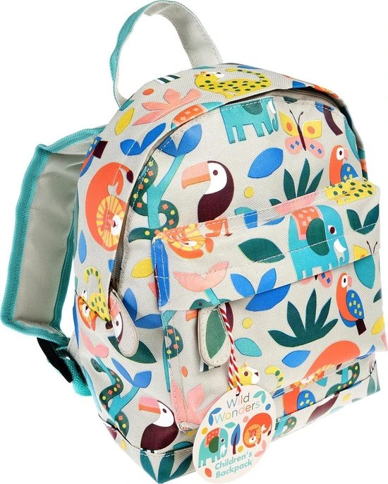 Leuk vintage rugzakje voor de allerkleinsten! Een musthave voor iedere liefhebber van wilde dieren! De tas heeft een handige draaglus en verstelbare schouderriemen en is voorzien van een stevige rits en handig voorvakje. De tas is makkelijk te reinigen met een vochtige doek.