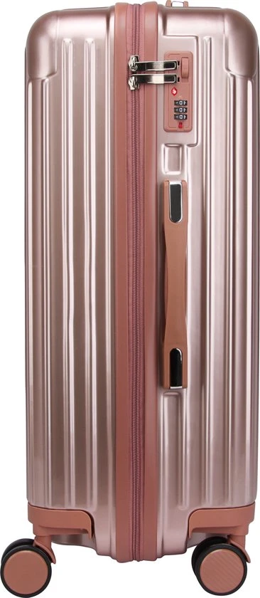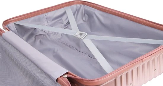 Deze betrouwbare koffer beschikt over al het nodigde voor u volgende vakantie. Een harde en veilige buitenkant, een aliminium trekstang, 3-cijferige slot, 4 dubbele flexibele wielen. De koffer is verkrijgbaar in 3 formaten. De middenmaat en grote maat zijn voorzien van stootrubbers, deze zorgen ervoor dat uw koffer tijdens transport zo min mogelijk beschadigd raakt. De stootrubbers bevinden zijn aan de lange zijde van de koffer. Zo beschikken de middenmaat en de grote maat ook voor een extra handvat. Deze zit onder het cijferslot. Doormiddel van deze extra handvat is het makkelijker om de zware koffer te verplaatsen of op te tillen in de auto, trein of bus. Binnen in de koffer is er een duidelijke en overzichtelijke verdeling. Aan de ene zijde een divider met 2 gekruiste spanbanden en aan de andere zijde een handige ritsvak. Dit maakt deze koffer van het merk Royal Swiss een betrouwbare reispartner met een fraaie design.