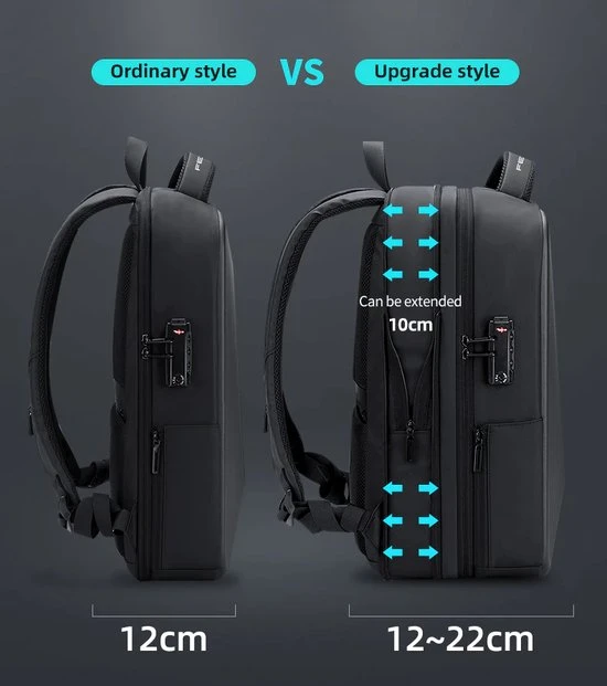 Deze stijlvolle Upgrade anti-diefstal rugzak is ideaal voor dagelijks gebruik. Perfect voor school, werk, reizen, wandelen, bergbeklimmen en kamperen. De externe USB laadaansluiting biedt efficiënte oplaadmogelijkheden voor jouw telefoon onderweg. Met behulp van de handige slot-functie zijn jouw spullen altijd beschermd tegen zakkenrollers! Bovendien heeft deze ruime anti-diefstal rugtas genoeg zijvakken om flessen, paraplu of andere voorwerpen in op te bergen.