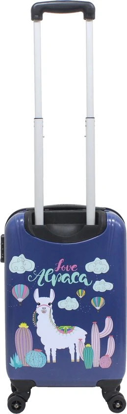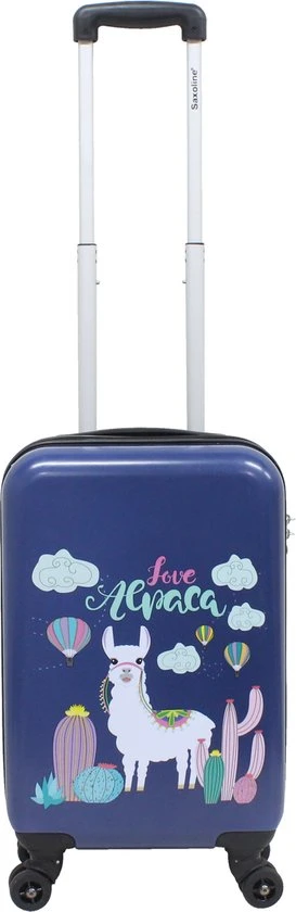 Een leuke harde Saxoline koffer S (55cm) gemaakt van ABS met krasbestendige polycarbonaat oppervlakte, volledig bedrukt met Alpaca. Deze kleine koffer is geschikt als handtas en brengt u onmiddellijk in de vakantiesfeer. Hij rolt op 4 spinner-wielen en sluit af met een TSA cijferslot. Saxoline biedt U 3 jaar waarborg.