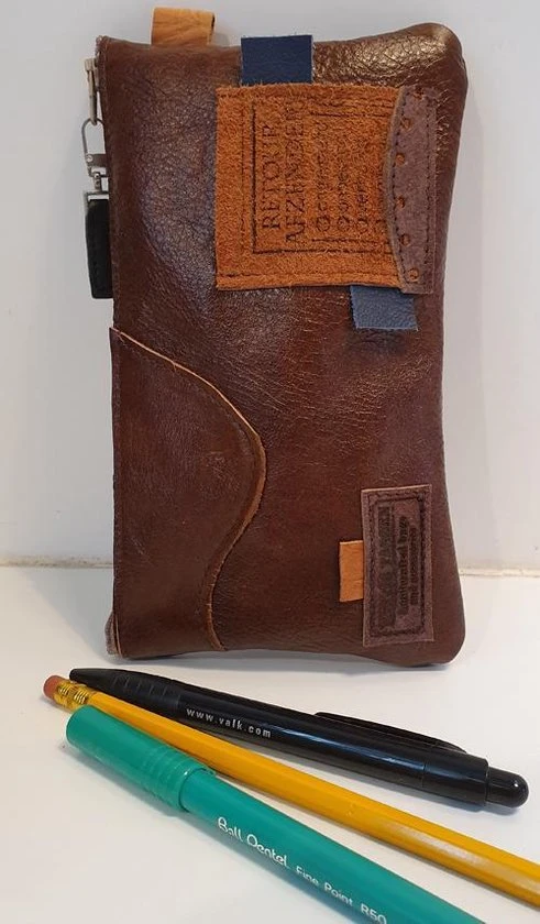 Handgemaakt leren etui, make-up tasje, medicijntasje of telefoontasje.