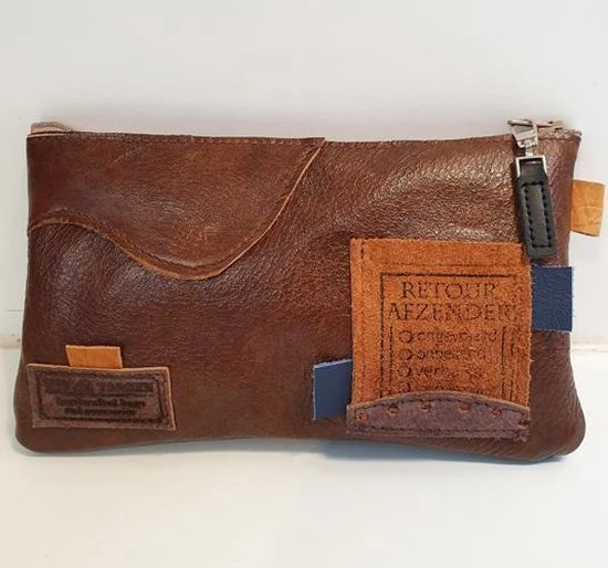 Groothandel ???? Toetie & Zo Handgemaakte Leren Etui Patchwork Bruin, Telefoontas, Makeuptas, Toilettas, Pennenetui, Medicijntasje, Leder ????