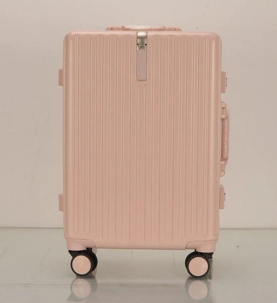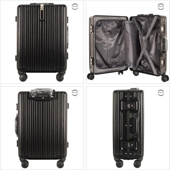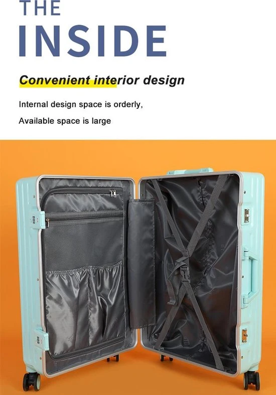 ABS + pc-hoes + zacht polyester voering+ trolleysysteem+slank aluminium frame + mute spinner wielen + TSA-vergrendeling + automatisch terugverend handvat