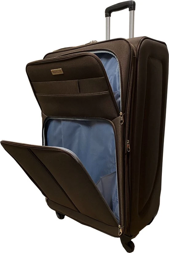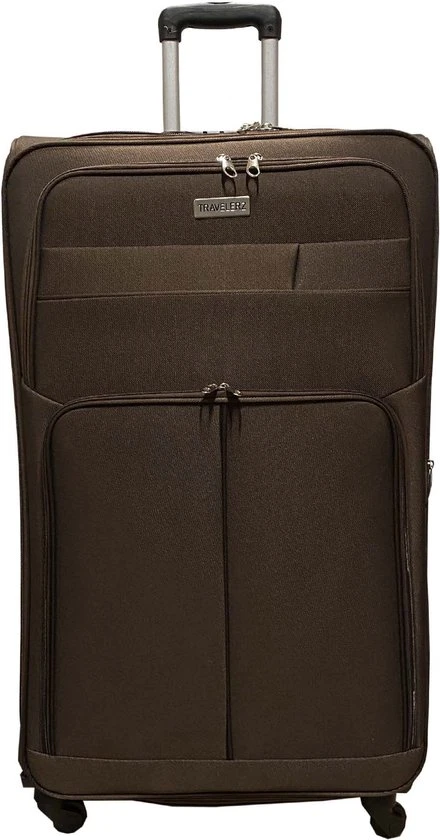 Deze softcase reiskoffer 139 liter van Travelerz is gemaakt van een sterke stof in de kleur bruin. De reiskoffer heeft een inhoud van 139 liter waardoor je veel mee kunt nemen tijdens je reis. Doordat de reiskoffer is uitgevoerd met een expander kan de reiskoffer nog een stukje groter worden gemaakt voor meer opbergruimte.