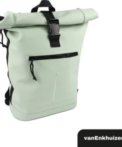 Neem je spullen overal mee naartoe in deze stijlvolle van Enkhuizen Rolltop Rugzak voor dames en heren. Maak de rugtas groter en kleiner door de sluiting op of uit te rollen. Het laptopvak biedt ruimte aan een 15,6 inch laptop, die droog blijft via het waterafstotende Tarpaulin. Houd je spullen warm of koud dankzij de thermo binnenzijde en gebruik de ritsvakken om kleine spullen weg te stoppen. Veilig de weg op in het donker is geen probleem door de reflectie strip op de rugzak. De gewatteerde schouderbanden zorgen voor ideaal draagcomfort, waardoor deze handige tas onmisbaar wordt.
