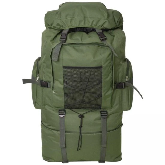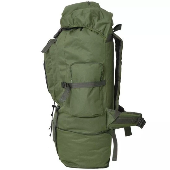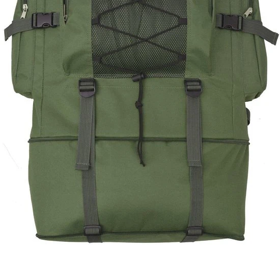 Onze comfortabele en praktische rugzak in legerstijl is het ideale gezelschap vooor soldaten, maar ook voor verkenners, jagers, hikers en andere buitenfanaten. De backpack is gemaakt van hoogwaardig 600D polyester met waterafstotende coating. De legertas is duurzaam, slijtvast en waterbestendig. Deze legerstijl rugzak heeft 2 brede schouderbanden en een band om rond het middel te knopen. De tas heeft een grote capaciteit met zijn 100 liter inhoud, dus alles wat u nodig heeft kunt u meenemen op uw avontuur. Het grote compartiment kan gebruikt worden voor het opslaan van grote spullen, en het trekkoord en de gespbevestiging zorgen dat uw eigendommen veilig blijven zitten. De tas heeft ook een voorvak met rits, 1 vak met gaas, 2 vakken met rits aan de zijkant en 2 vakken met rits op de bovenkant. Dankzij de opbergvakken heeft u extra ruimte voor het veilig en handig opbergen van spullen die u binnen handbereik wil houden, zoals messen, brillen en lampen. Dankzij de ritssluiting aan de onder onderkant kunt u de hoogte van de rugzak vergroten tot 78 cm.