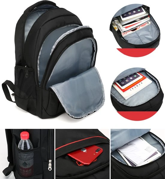 De vijf verschillende compartimenten bieden ruimte voor alles wat je nodig hebt! Het ruime hoofdcompartiment bevat een gevoerd 15,6” laptopvak en een tabletvak. Ook kun je jouw mappen en notitieboekjes gemakkelijk kwijt. Naast een easy-access vak aan de voorkant en twee extra vakken is er ruimte voor een waterfles (of paraplu) aan beide zijkanten.