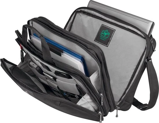 Voor 17 inch laptops Diverse grote opbergvakken Groot vak aan de voorzijde Meer dan 10 kleinere accessoire vakjes Mogelijkheid voor slot op de ritssluiting Softgrip-handvat, scheurvrije schouderriem Met band voor bevestiging over een trolley stang Checkpoint Friendly Design 3 jaar garantie (Limited Lifetime) Gewicht: 1.3 kg / Volume: 21 liter