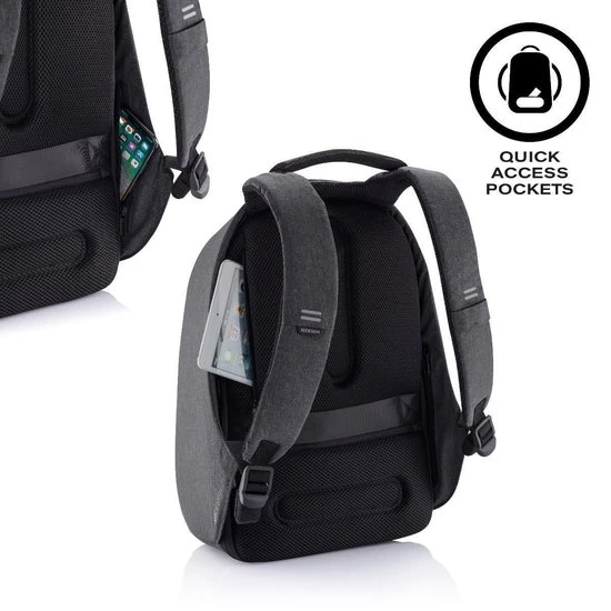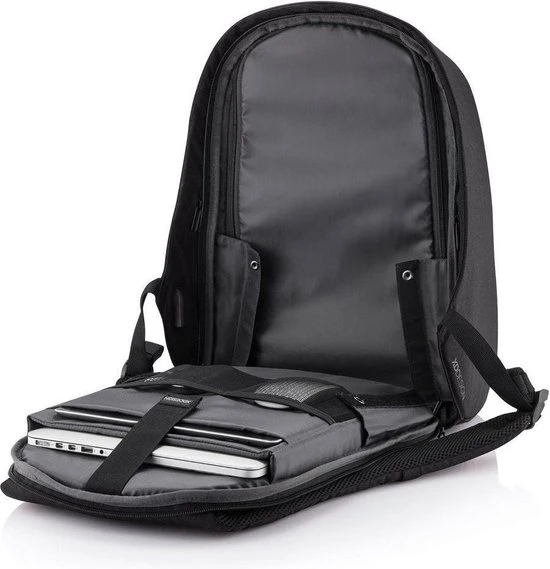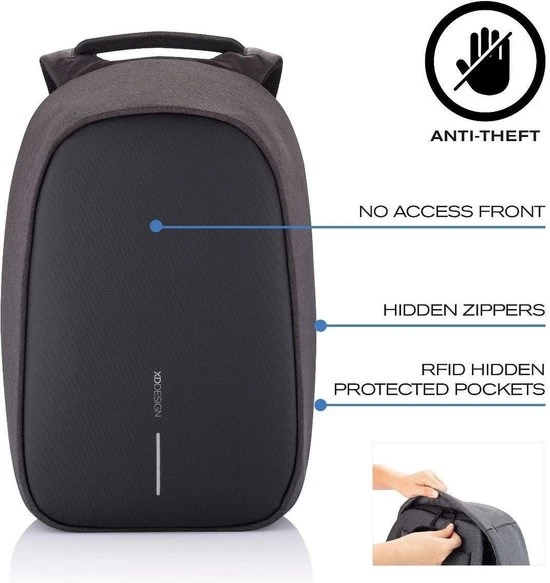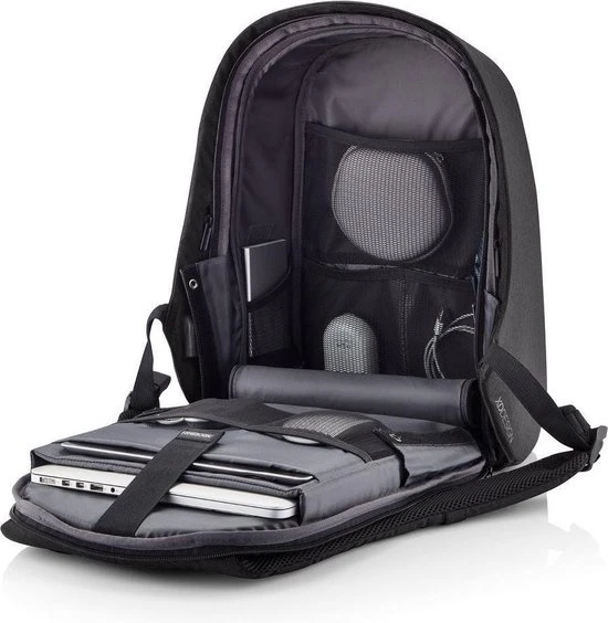 De Bobby Hero tassen zijn de nieuw generatie anti-diefstal rugzakken. Deze nieuwe modellen zorgen dat je veilig, zorgeloos en georganiseerd op weg kan. Met kenmerken als snijbestendig materiaal en verborgen ritssluitingen zijn je spullen veilig. De Bobby Hero heeft daarnaast handige functies als een USB-poort, reflecterende strips en een bagageriem; én de Bobby Hero is waterafstotend. Aan de binnenzijde vindt u gevoerde vakken voor een 17“ laptop, tablet tot 12,9” en al uw andere spullen. De tas is gemaakt van rPET, gerecyclede PET flessen. Geregistreerd ontwerp®
