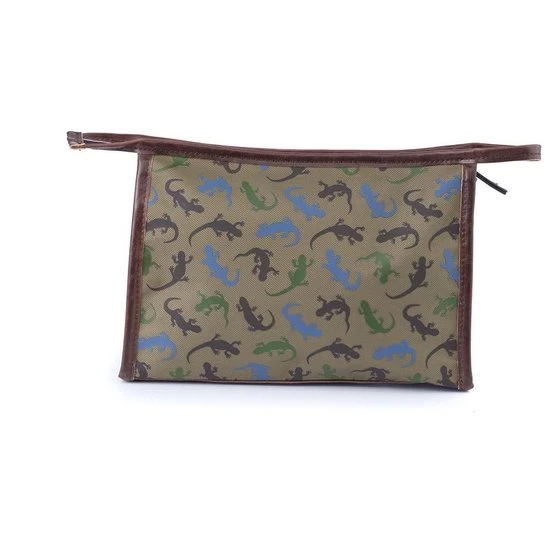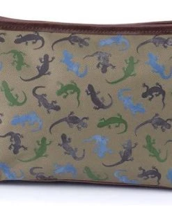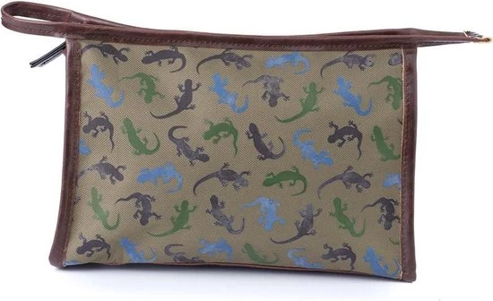 De toilettas heeft een stoere salamander print en is te sluiten door middel van een rits.